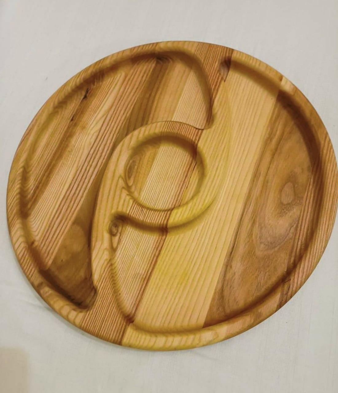 Вся наша посуда із дерева екологічна й натуральна. Це маленька приємність для себе та гарний подарунок із живою енергетикою для близьких. Одна порційна страва, розділена всередині на кілька комірок, що дає змогу покласти в одну тарілку різну їжу, не змішуючи її між собою. Таку тарілку можна використовувати для м'ясних і рибних страв. Ідеально підійде для подавання овочів і фруктів. Ця тарілка матиме стильний та елегантний вигляд на святковому столі, а також тішитиме Вас у щоденному використанні.